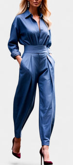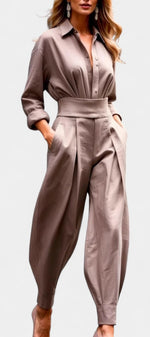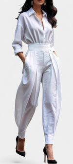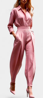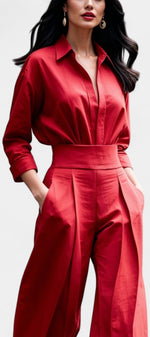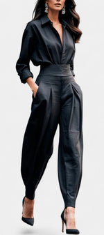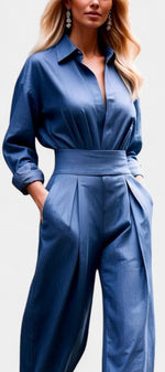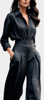 Un ensemble épuré et naturellement sophistiqué, pensé pour une élégance sans effort. Lía associe une chemise fluide à boutons à un pantalon taille haute plissé, créant une silhouette équilibrée, moderne et parfaitement maîtrisée. La coupe met en valeur la taille tout en laissant une grande liberté de mouvement, apportant une sensation de légèreté et de confort raffinés. Une proposition essentielle pour un style à la fois calme, affirmé et intemporel.