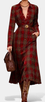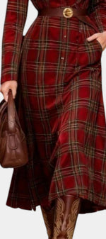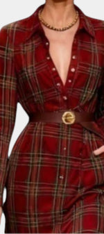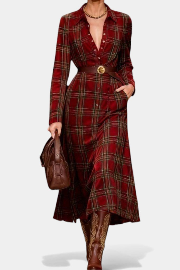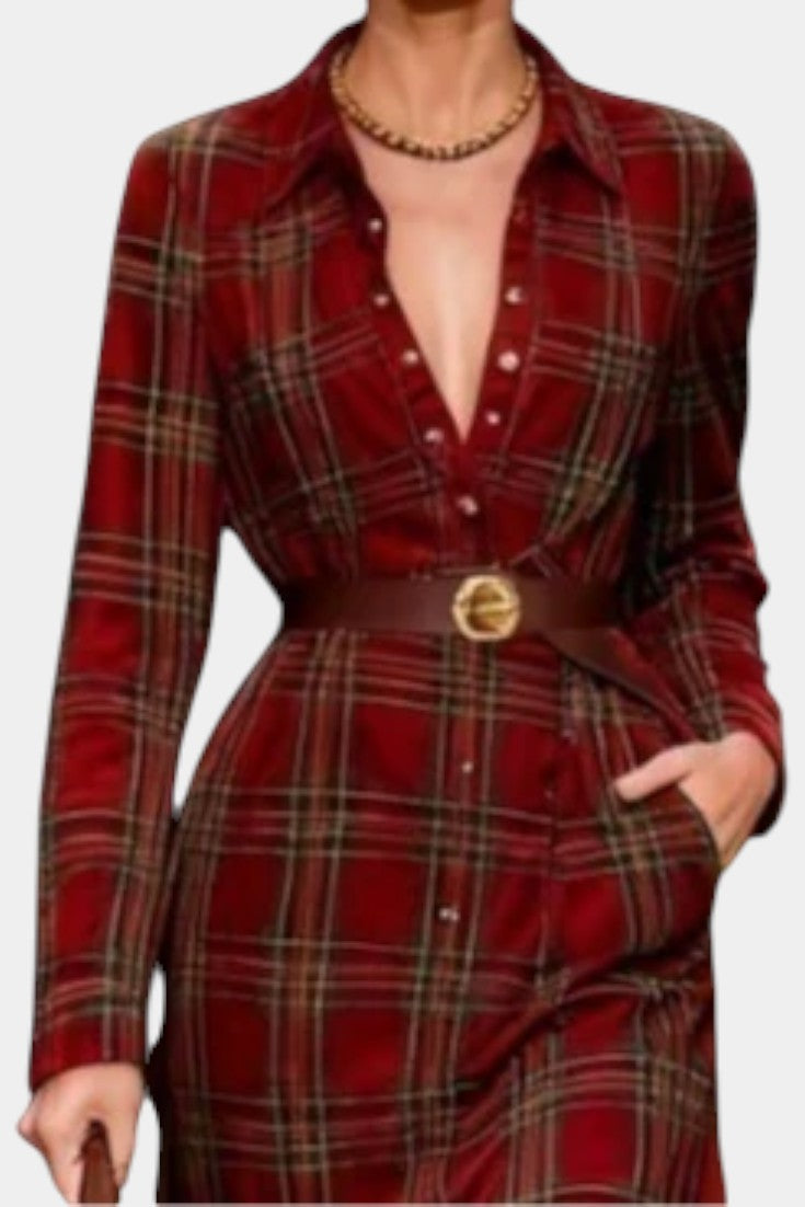 Lise Robe Chemise Longue à Carreaux Rouges avec Ceinture