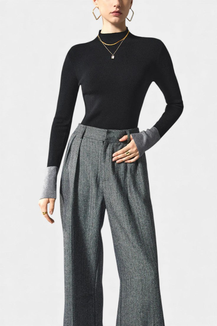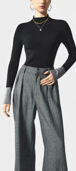 Maiwenn Haut Tricoté à Manches Longues et Poignets Contrastés