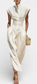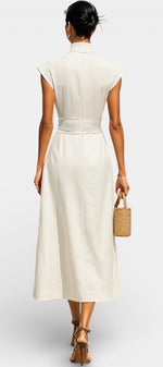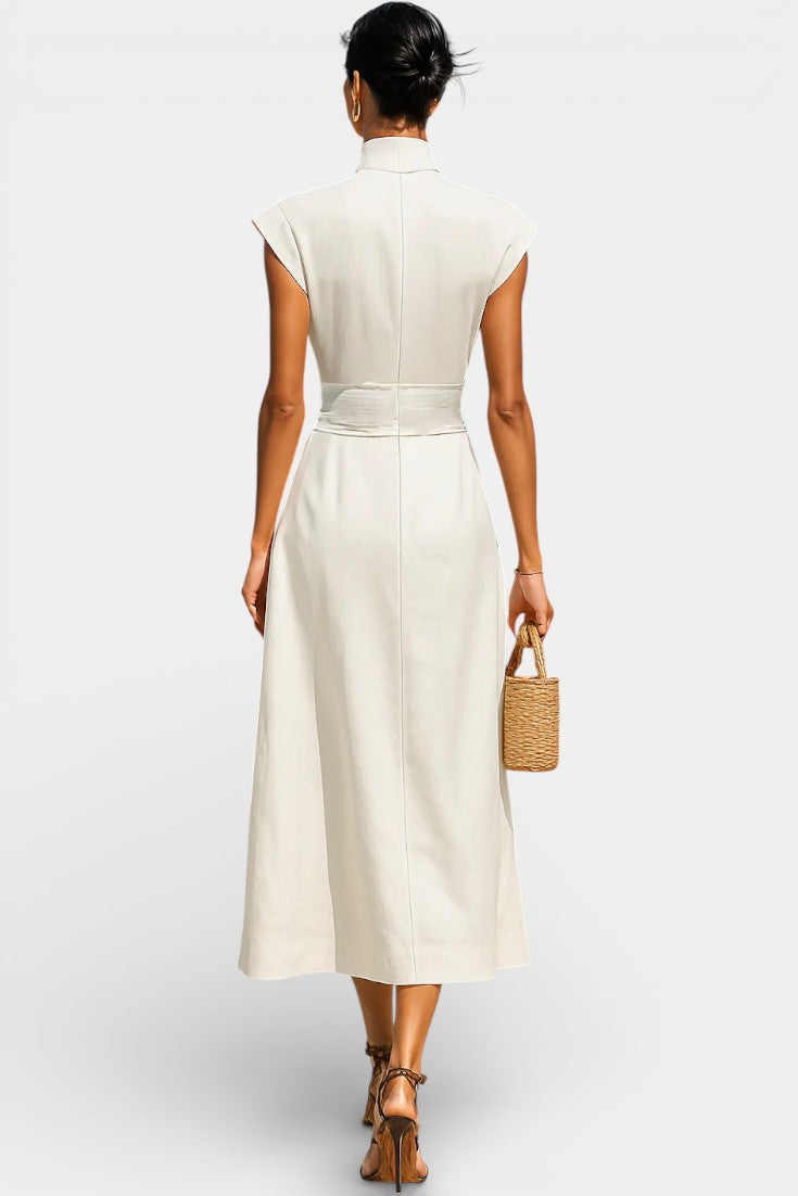 Épurée et naturellement élégante, la robe Mariana mise sur la simplicité maîtrisée et le confort des belles matières. Confectionnée en pur coton respirant, elle séduit par son col revers structuré qui apporte une touche classique, tandis que sa taille délicatement définie souligne la silhouette avec justesse. Sa jupe longue à la ligne légèrement évasée accompagne le mouvement avec fluidité, offrant une allure à la fois décontractée et soignée. Une pièce essentielle pour une élégance quotidienne sans effort.