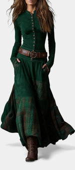 Marlis Robe Longue Élégante à Carreaux Vintage