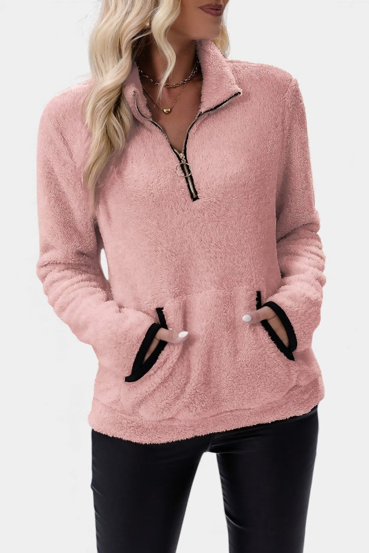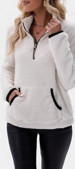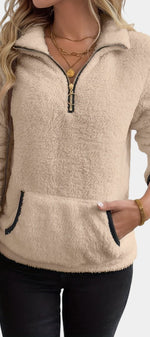 Un pull douillet et facile à vivre, pensé pour offrir chaleur et simplicité au quotidien. Marusya mise sur un demi-zip moderne et une poche kangourou pratique, créant une pièce décontractée qui accompagne aussi bien les journées fraîches que les moments détente.