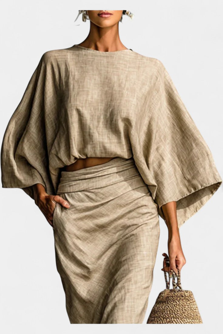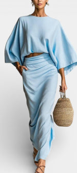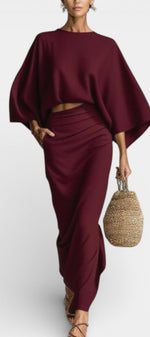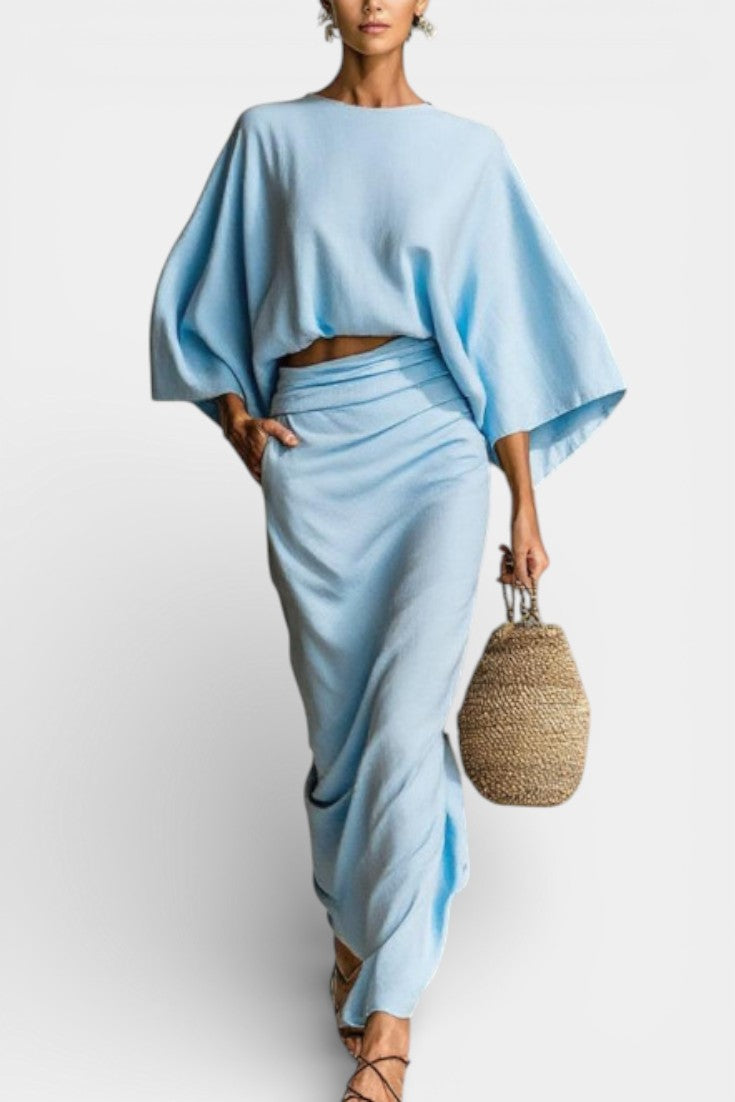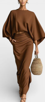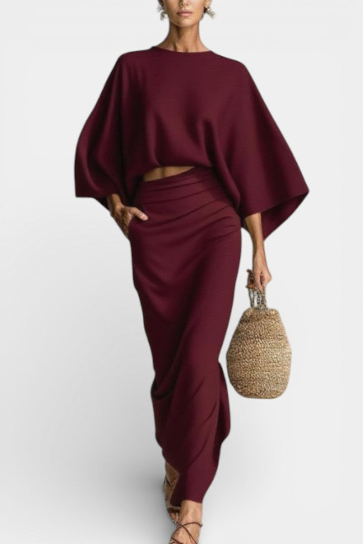 Marva Ensemble Deux-Pièces à Manches Chauve-Souris et Jupe Longue Fluide