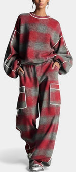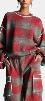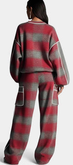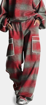 Oléna Ensemble Décontracté Rouge et Gris à Carreaux