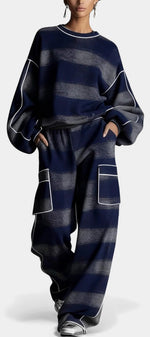 Un ensemble au style urbain affirmé, mélangeant carreaux rouges et gris avec des touches color-block pour une allure dynamique et contemporaine. Oléna propose un sweat-shirt à col rond et manches longues associé à un pantalon décontracté, créant une silhouette confortable et moderne à porter au quotidien.