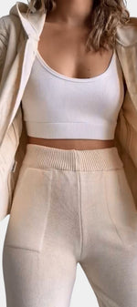 Portez l’ensemble avec un jean taille haute et des bottines pour un look moderne et structuré, ou associez-le à un pantalon fluide pour une allure douce et minimaliste. Le cardigan peut également être porté seul sur une robe midi pour une silhouette cosy et féminine.
