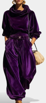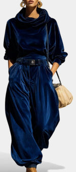 Un ensemble cosy au charme rétro, pensé pour offrir une allure décontractée mais élégante. Riana associe un haut à capuche au tombé souple et un pantalon ample qui accompagne le mouvement avec aisance, créant une silhouette détendue et harmonieuse. La ceinture incluse permet d’ajuster et de structurer la taille selon l’effet souhaité.