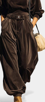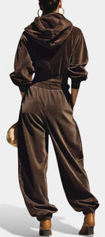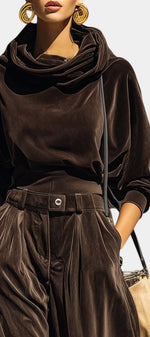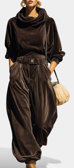 Riana Ensemble à Capuche et Pantalon Ample en Velours Brun Vintage