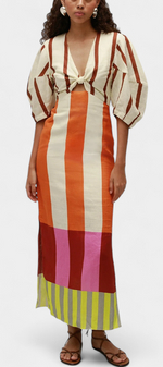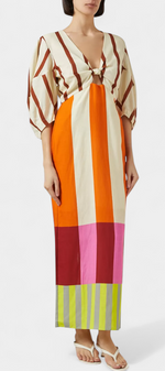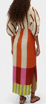 Alison Robe Longue en Lin à Décolleté en V et Manches Bouffantes