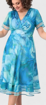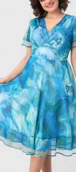 • Tissu en georgette avec une chute fluide et un imprimé artistique dans des tons d'eau