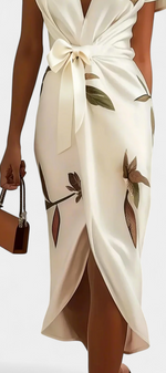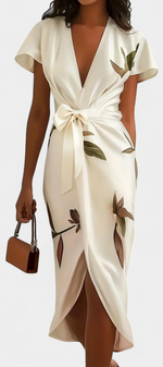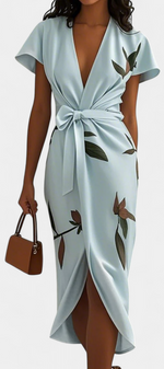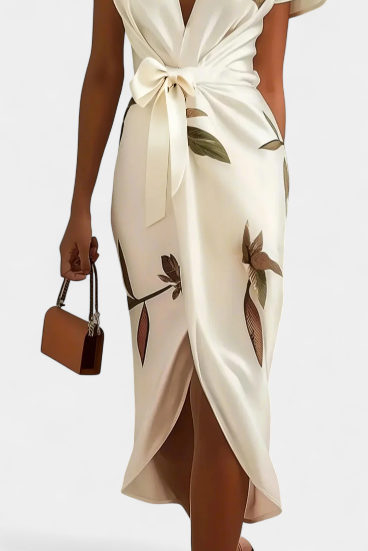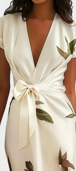 Dhalia Robe Croisée à Décolleté en V et Nœud Latéral à Imprimé Feuilles