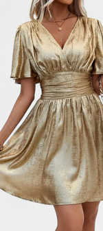 Légère, fluide et sophistiquée, la robe Adalee est conçue pour se démarquer avec sa finition brillante et sa silhouette flatteuse. Le décolleté en V et la taille croisée mettent en valeur la silhouette avec élégance, tandis que les manches fluides apportent mouvement et féminité. Parfaite pour les dîners, les célébrations ou les journées spéciales avec un style raffiné.