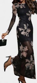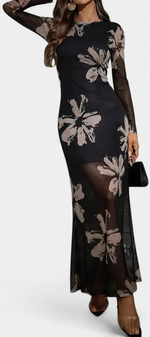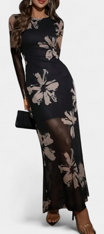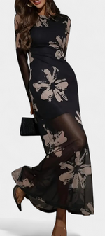 Une proposition raffinée qui allie féminité et modernité. Aldona présente un délicat imprimé floral sur une silhouette ajustée, rehaussée par des manches longues et un col rond aux lignes douces. Le froncé en tulle ajoute de la texture et du dynamisme, tandis que la longueur jusqu'à la cheville apporte une allure sophistiquée et intemporelle.