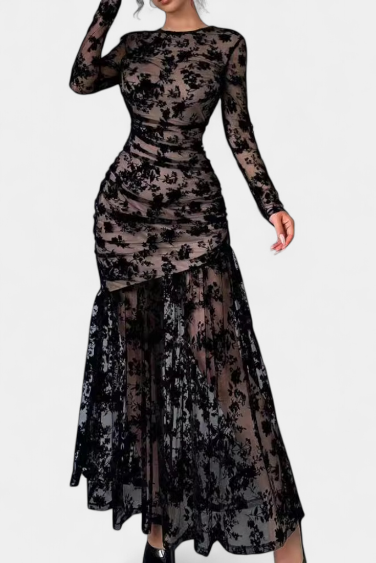 Une silhouette féminine qui allie simplicité et caractère automnal. Alvana se distingue par un imprimé floral sur fond sombre qui apporte profondeur et sophistication, accompagné d'un col rond classique et de manches longues qui équilibrent le design. Sa coupe en A s'écoule naturellement, en faisant une pièce polyvalente et intemporelle.