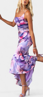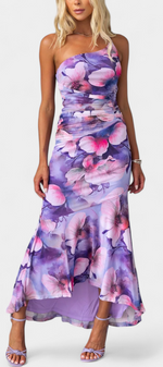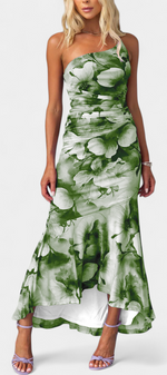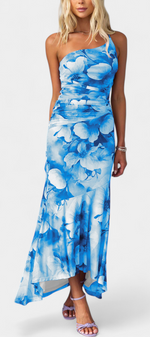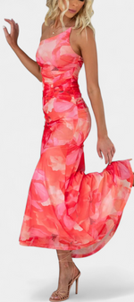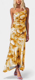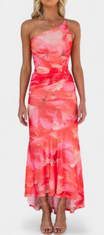 Abigail Robe Asymétrique en Maille Florale à Une Épaule