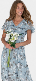 Un mélange harmonieux de romantisme et de fraîcheur estivale. La robe Amara éblouit avec son imprimé floral charmant, son décolleté en V et ses manches ailées qui apportent légèreté et mouvement. Sa coupe fluide en silhouette A en fait un choix idéal pour les journées ensoleillées, les promenades spéciales ou les célébrations en plein air.