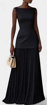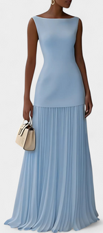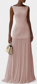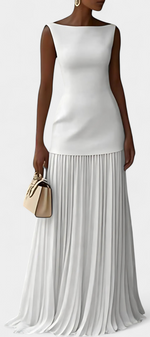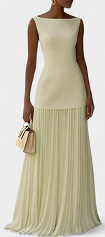 Silvana Robe Longue Plissée en Chiffon à Col Bateau
