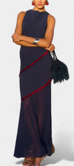 Élégance ajustée avec une touche de mouvement artistique. La robe Orfila combine une silhouette bodycon sans manches avec une couche légère de tulle et des franges contrastées qui apportent dynamisme et sophistication. Conçue pour mettre en valeur la silhouette avec confiance, elle est parfaite pour les événements où chaque détail compte.