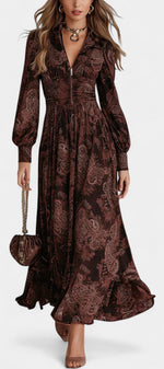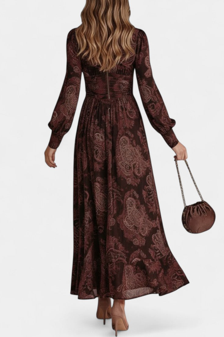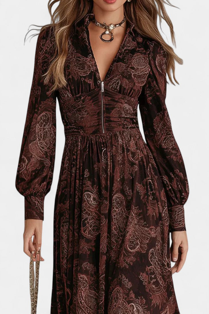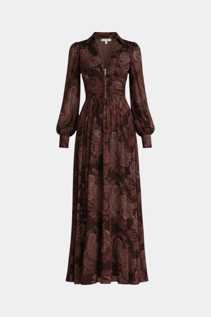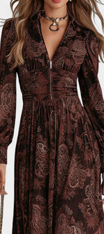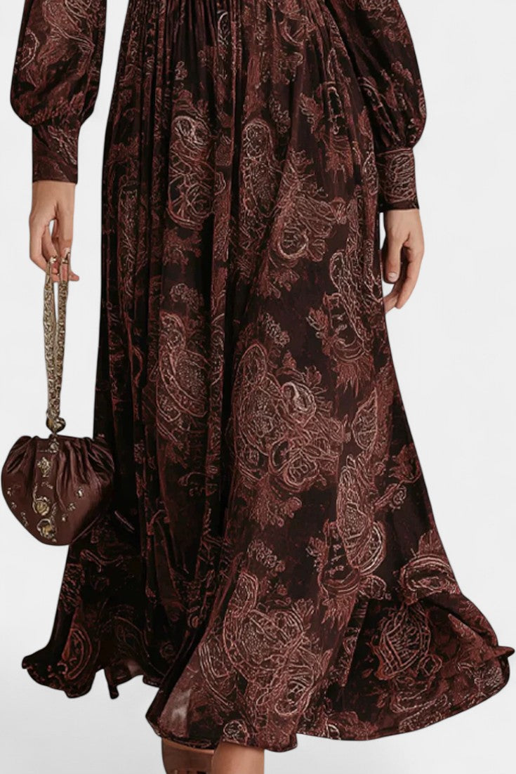 Taveuni Robe Midi à Imprimé Paisley et Col Fermé Élégant