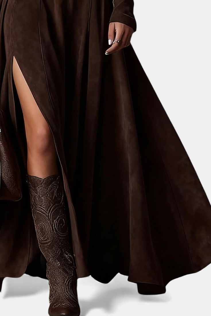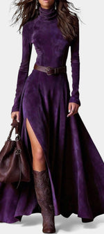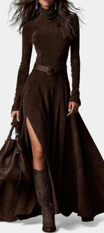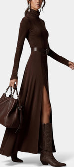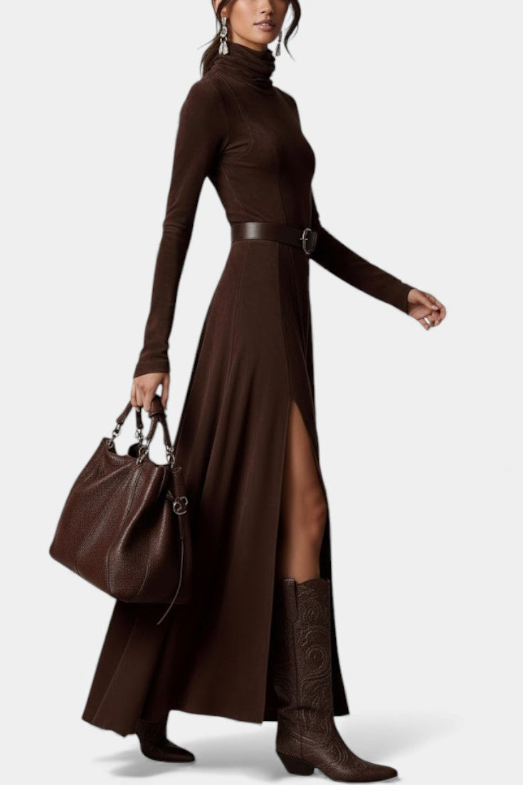 Roselda Robe Maxi à Col Roulé & Fente Élégante