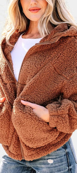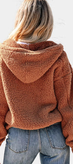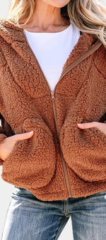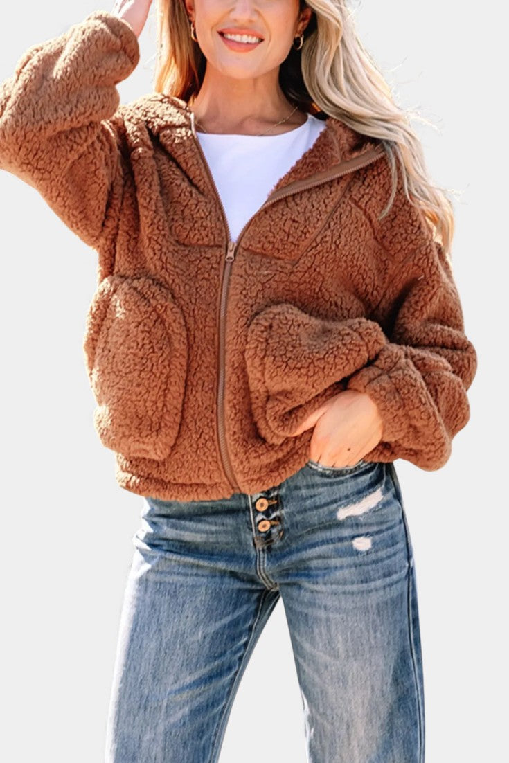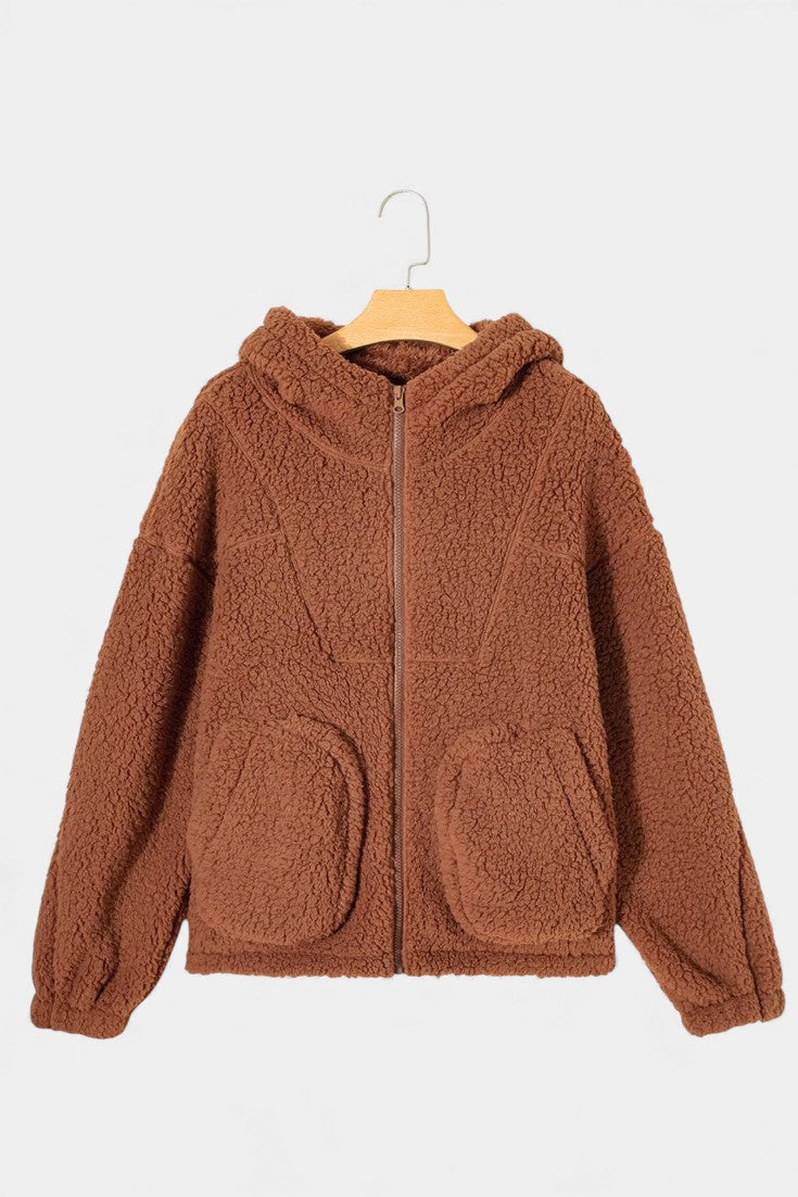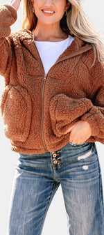 Roza Veste Teddy à Capuche et Zip Coupe Ample