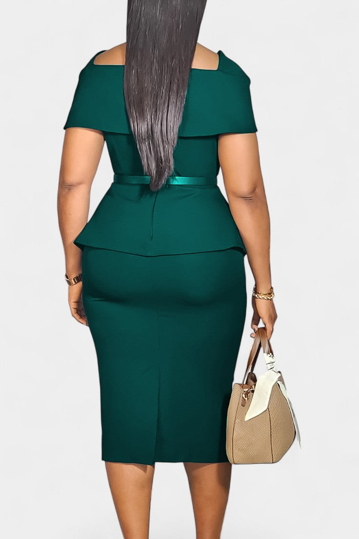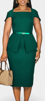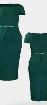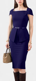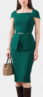 Une robe structurée et élégante, pensée pour sublimer la silhouette avec sobriété. Sabela se distingue par son encolure carrée raffinée, ses manches courtes épurées et sa coupe fourreau midi qui dessine une allure professionnelle et féminine. La ceinture intégrée marque délicatement la taille, apportant équilibre et assurance à l’ensemble.