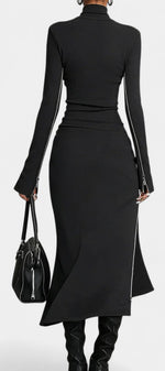 Graphique et affirmé, l’ensemble Sade joue avec les lignes et les contrastes pour créer une silhouette résolument contemporaine. Son col montant apporte une touche architecturale, tandis que les fermetures éclair disposées de manière irrégulière et les poches généreuses renforcent son caractère utilitaire chic. Confectionné dans un tissu doux et agréable au porter, il épouse la silhouette avec justesse tout en conservant une allure moderne et distinctive. Une pièce pensée pour celles qui recherchent un style urbain, structuré et singulier.