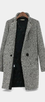 Snezhana Manteau Long à Motif Pied-de-Poule Élégant