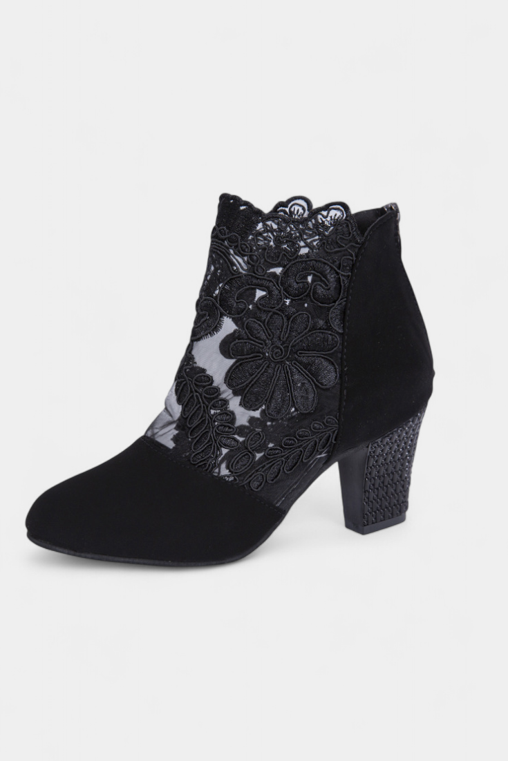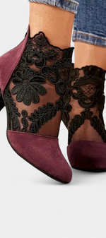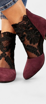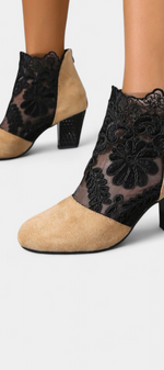 Un design qui allie sophistication et charme artisanal dans chaque détail. Les talons Alaine se distinguent par une délicate dentelle florale faite à la main qui apporte une touche romantique et intemporelle. Leur semelle rembourrée et le talon stable garantissent un confort tout au long de la journée, en faisant le choix parfait pour les mariages, les événements élégants ou les soirées spéciales.