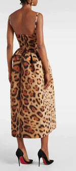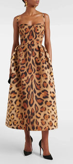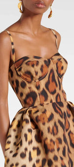 Tiana Robe Midi à Imprimé Léopard et Corset Bustier Sculptant