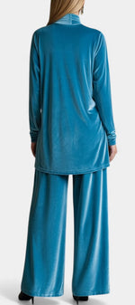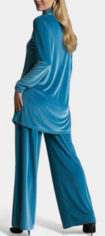 Un ensemble au caractère affirmé, pensé pour conjuguer élégance et assurance. Tifenn séduit par son velours profond, sa coupe fluide et son col montant structuré qui sublime la posture. Le pantalon fendu apporte une touche moderne et féminine, révélant le mouvement avec subtilité. Une silhouette harmonieuse, à la fois sophistiquée et confortable.