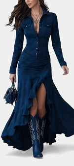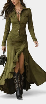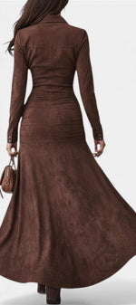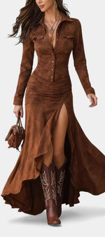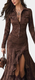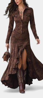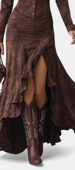 Tilda Robe Longue Marron Rétro à Volants Irréguliers