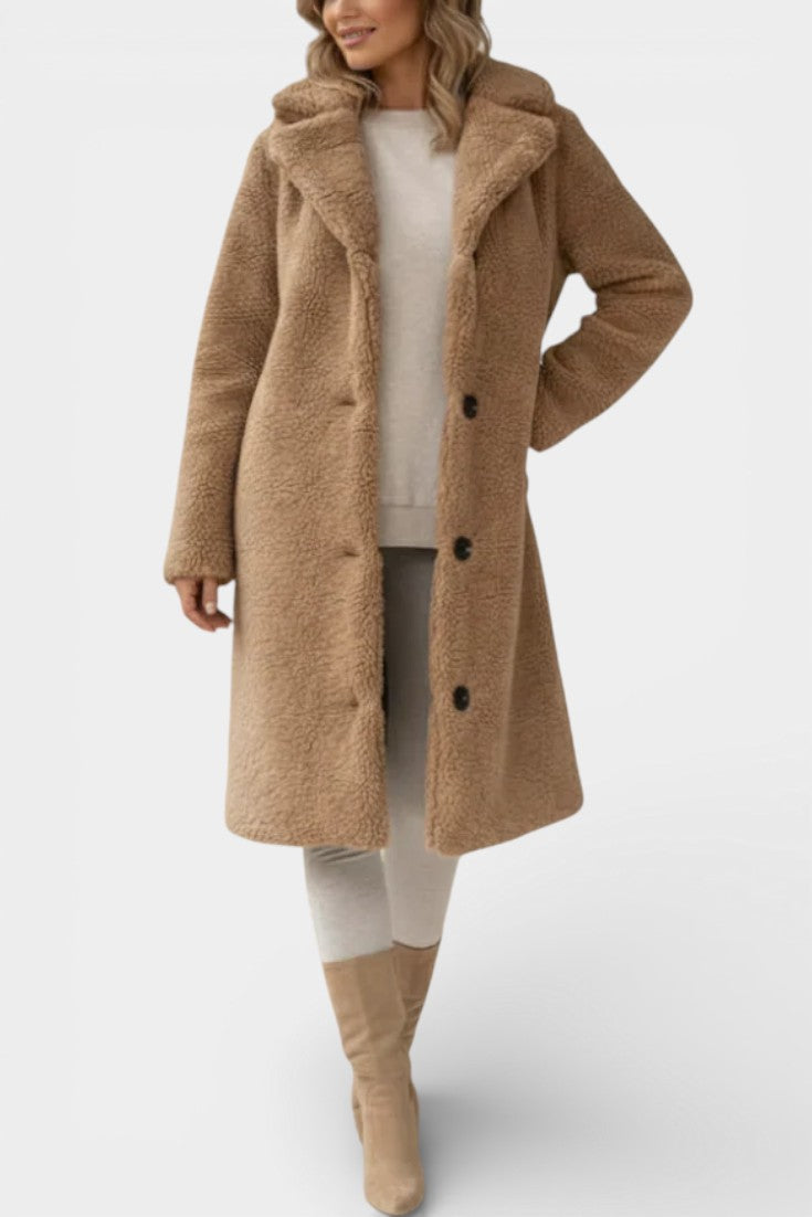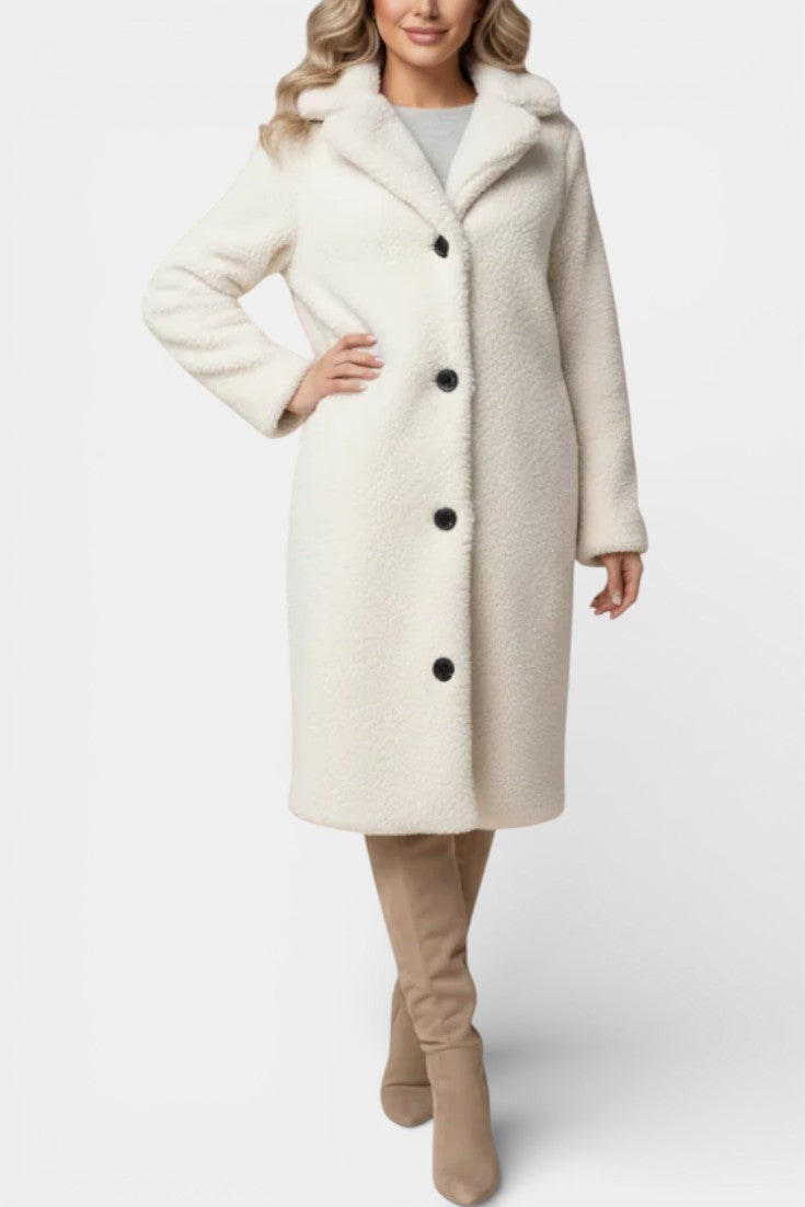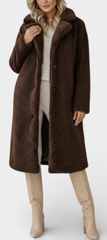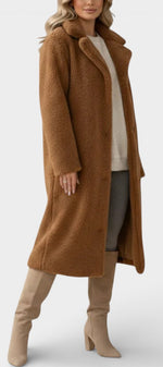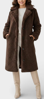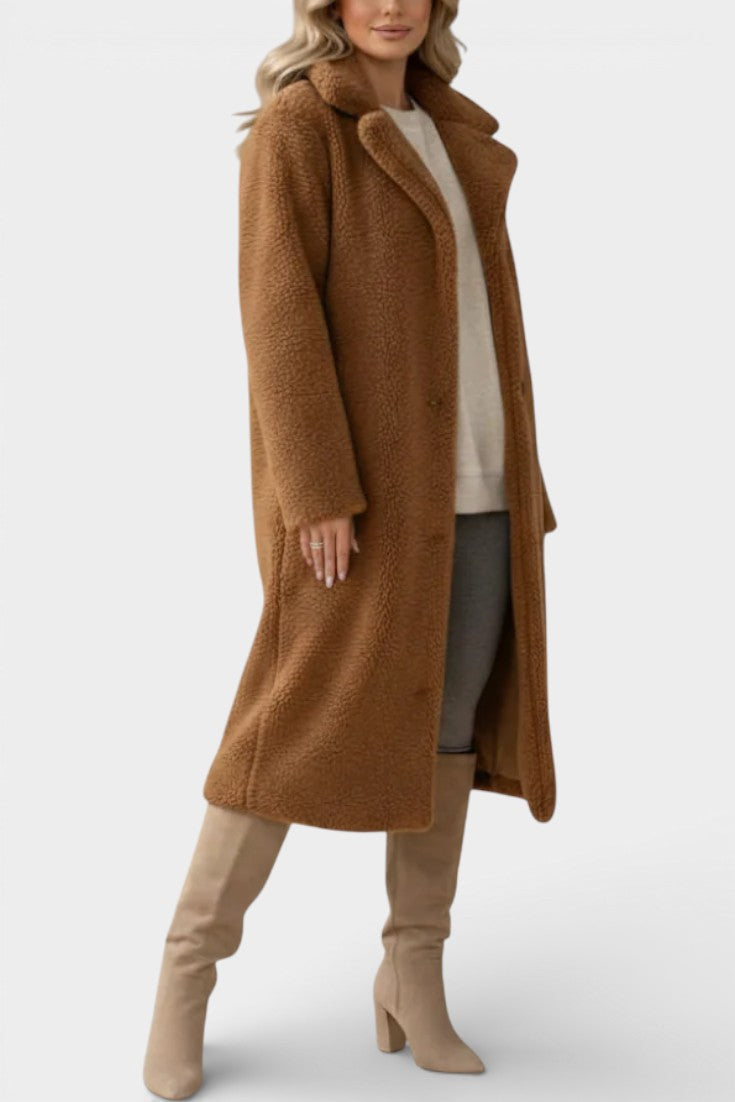 Verdeline Manteau Teddy Long Oversize à Col Revers
