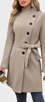 Yuliana Manteau Long à Boutons et Taille Nouée