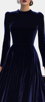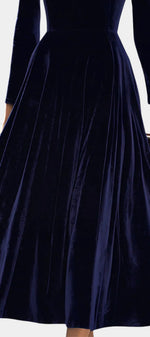 Zéliane Robe Midi en Velours Bleu Marine Luxueux